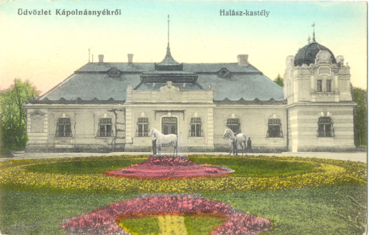 A 19. század második felében Halász Lázár volt az egyik legnagyobb birtokos Nyéken, gazdaságát 1893-ban már bérlők művelték. Ez olyan jól jövedelmezett, hogy a család 1895-ben már 1235 katasztrális holdat birtokolt, korábbi földjeinek dupláját, és övék volt a legjobban gépesített gazdaság is. Fia, Dabasi Halász Gedeon az 1910-es években építette fel mai formájában a család kápolnásnyéki kastélyát. Az akkor neobarokk stílusban átalakított épületet 1945-ig a Halász família lakta. Az 1945 utáni kollektivizálással termelőszövetkezeti tulajdonba került az épület: a Vörösmarty TSZ irodái működtek a falai között. Az épület ezekben az időkben felújításra nem került, állapota folyamatosan romlott.