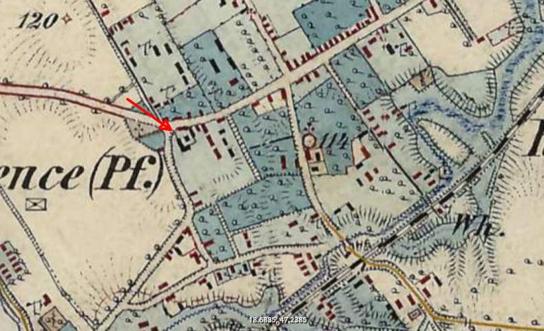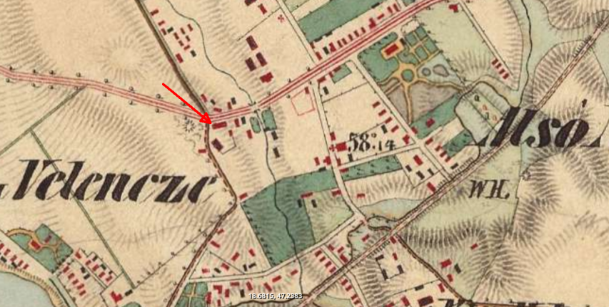 Az 1819 és 1869 között végzett második, és az 1872 és 1884 között végzett harmadik katonai felmérés térképein jól látszanak a falu szélén, a fent megjelölt útkereszteződésben a nagyvendéglő és kapcsolódó épületei. Az 1884-ben készült részletes kataszteri térképen még pontosabban kivehető az említett épületegyüttes. A térképeken piros nyíl jelöli a helyet.