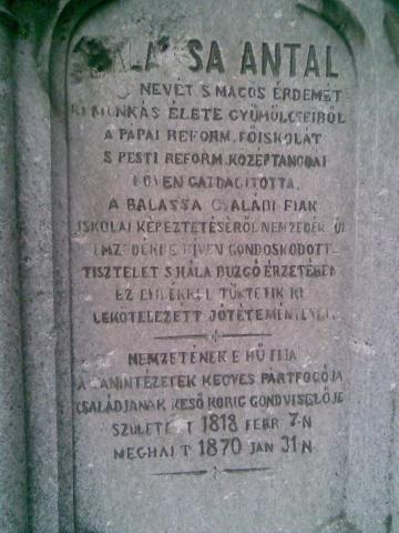A Gárdonyi u. és az Ország u. kereszteződésénél látható egy síremlék, amelyet fák takartak el hosszú évtizedeken keresztül, a közelmúltban újra emberközelbe kerül. BALASSA ANTAL síremléke található ott, amelyhez egy szép aszfaltos járda vezet, az emlékmű környékét rendezetté tette a polgármesteri hivatal. Ki volt ez a Balassa Antal? Életrajzát a század elején jegyezték le idős nyékiek elmondása alapján. 1818. február 7-én született, a régi Fejér megyei nemes Balassa család sarja volt. Apja Balassa Antal, anyja Pázmándy Zsófia, kiktől 1818.február 7-én született. Szülei korán elhaltak elég szép, bár nem nagy birtokot hagytak gyermekeikre Antalra és Juliannára. Antal tanulni ment a kecskeméti, majd a pápai főiskolára, nővére pedig férjhez ment a pettendi földbirtokoshoz Sebestyén Sámuelhez. Balassa Antal - amennyiben az adatokból meg lehet állapítani - kiválóan eszes, tehetséges, de nagyon élénk idegalkatú, sőt szilaj természetű gyermek volt. Anyja keze talán gyenge volt, vagy a szülői háztól való korai elszakadás okozta, hogy a nevelés nem tudta benne a szélsőségektől mentes temperamentumot kifejleszteni. Ebből magyarázható meg, hogy minden eszessége mellett sem volt jó tanuló, sőt nehezen tűrte az iskola korlátait, de az akkori időkhöz képest jól elvégezte azokat. Jogász korában már gavallér úrfi volt, saját fogatán járt. Tanulmányai végeztével id. Sárközi Kázmér mellett volt patvarista, majd megyei esküdt, de csakhamar, még a pálya kezdetén otthagyta a hivatalt és visszavonult atyai örökségébe, nyéki birtokára. Nagy kedvel fogott a gazdálkodáshoz, gyönyörködött címeres ökreiben, tarka lovaiban és megláncolt rókájában. Látogatta a pesti lóversenyeket, járta a híres lóvásárokat. Birtoka a kitartó munka és a szerencse kedvezése mellett folyton gyarapodott. Szerzett is, de főként örökölt. Javainak nagyobb részét egyik gyermektelen nagynénjétől egy bodméri földbirtokos özvegyéről örökölte, másik nagynénjétől Ráckeresztúron örökölt. Balassa Antal tehát tekintélyes birtokos volt a vidéken 679 holdnyi föld ura, mely négy terült el Nyék, Bodmér, Gárdony, és Ráckeresztúr határában. Valósággal szerette földjét, tudta, hogy amennyit ád a földnek, annyit várhat tőle. Egyszerű, józan fejű, tipikus magyar ember volt. Háza tája a kellemes falusi gazdaság képét mutatta, amely a mai Balassa ház területén feküdt terebélyes gyümölcsfák és gondozott gazdaság volt a ház körül. A tekintetes úr agglegény maradt, így hiányzott a házából a verőfény, a gyermekek kedves lármája, de helyette sokszor volt hangos a ház, a gazdaság környéke a vidám vendégek zajától. Ismerős, vagy ismeretlen bátran kopoghatott be hozzá, mindenkit szívesen, magyarosan vendégül látott. Volt hozzá ideje, módja, szíve. Gazdálkodási szenvedélye mellett érdeklődött az új dolgok iránt is, szeretett látni és tudni, mikor a londoni világkiállításon részt vett 1851-ben nagyon sok újat tanult a művelt nyugattól, amelyet itthon is megvalósított. Községének, megyéjének ügyeiben is, szívesen forgolódott, a református egyház kurátora volt. Nagyon jó szíve volt, cselédjeinek emberséges gazdája és azok is ragaszkodtak hozzá, hosszú ideig szolgálták. Kedvelt társasági alak volt, ötletes, vidám, szellemes ember, kinek egyik-másik tréfája sokáig a nyékiek száján forgott, hozzá daliás, szép férfi, aki a nők körében is szívesen látott jómódú gavallér. Szinte különös, hogy egy ilyen férfi nőtlen maradt. Közben teltek az évek Balassa is megöregedett, a víg napok tünedeztek és nehezebben kopogtak be a nyéki kúriába. Az elevenség és életkedv megcsappant, kezdődött a test és lélek hanyatlása. Balassa visszavonult zárkózott emberré lett. Olykor búskomorrá vált, és elgondolkodott azon, hogy mi lesz a vagyonnal, ha ő meghal. Pusztult a ház, pusztult az udvar, az ősi kúriában sok Balassa rokon megfordult, kik mind számítottak az örökségre. Elgondolkodott, hogy a rokonoknak hagyja-e- így egy időre segít rajtuk, aztán majd az is elfogy - s az enyészeté lesz minden. Gondolt egyet és 1868.december 11-én Székesfehérváron Szöllősy Pál ügyvéd barátjával végrendeletet készíttetett, amelyben gondoskodik tisztességes temetésről és kijelenti, hogy minden örökségévé a pápai református kollégiumot és a budapesti református kollégiumot teszi meg. Örök alapítványt tett, melyből a Balassa család gyermekeit és a Szöllősy családból egy gyermeket a fenti gimnáziumok voltak kötelesek tanítani, így hosszú időre gondoskodott a családjáról és a gyermekekről, valamint gondoskodott az egyházakról is a nyéki, a gárdonyi református egyházakról, szegény és árvaalapra valláskülönbség nélkül hagyott pénzt, amelyből a szegény és árva gyermekeket kívánta neveltetni. A két gimnázium volt az örökség fő gondnoka és ők fizették ki a végrendelet alapján a különböző alkalmazottak, cselédeknek járó életjárulékokat, illetve a bútorok és ékszerek a család élő tagjaié lettek. Balassa jól sejtette, hogy rövidesen meghal, mert 2 évre rá 1870.január 31-én kéthetes betegség után elhunyt, és a nyéki Gurlyal völgyben lévő Balassa temetőbe temették. Elképzelhető az a meglepetés, az az öröm, amelyet a végrendelete okozott, melyet Török Pál református püspök olvasott fel. Az egyházat nehéz helyzetben segítette, de olyan helyre adta a pénzt az iskoláknak, ahol nagy szükség volt rá és sokat segített a családja boldogulásával is azáltal, hogy a család gyermekeinek a továbbtanulási lehetőséget biztosította. Ezért is volt az a háborúig, hogy a Balassa család leszármazottai közül nagyon sok orvos, ügyvéd